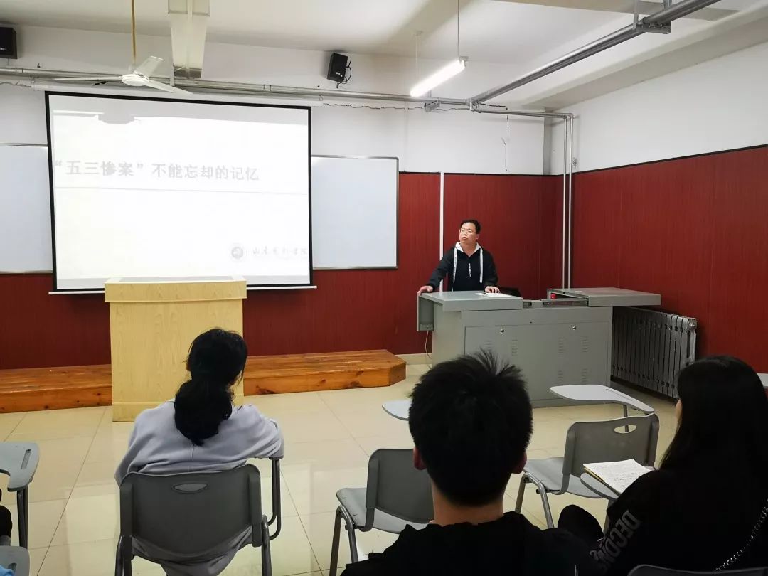 4月29日,公司邀请了美术学院李健老师向同学们开展“五三惨案”的专题讲座,很好的将理论与实践相结合,是一次深刻的爱国主义教育。